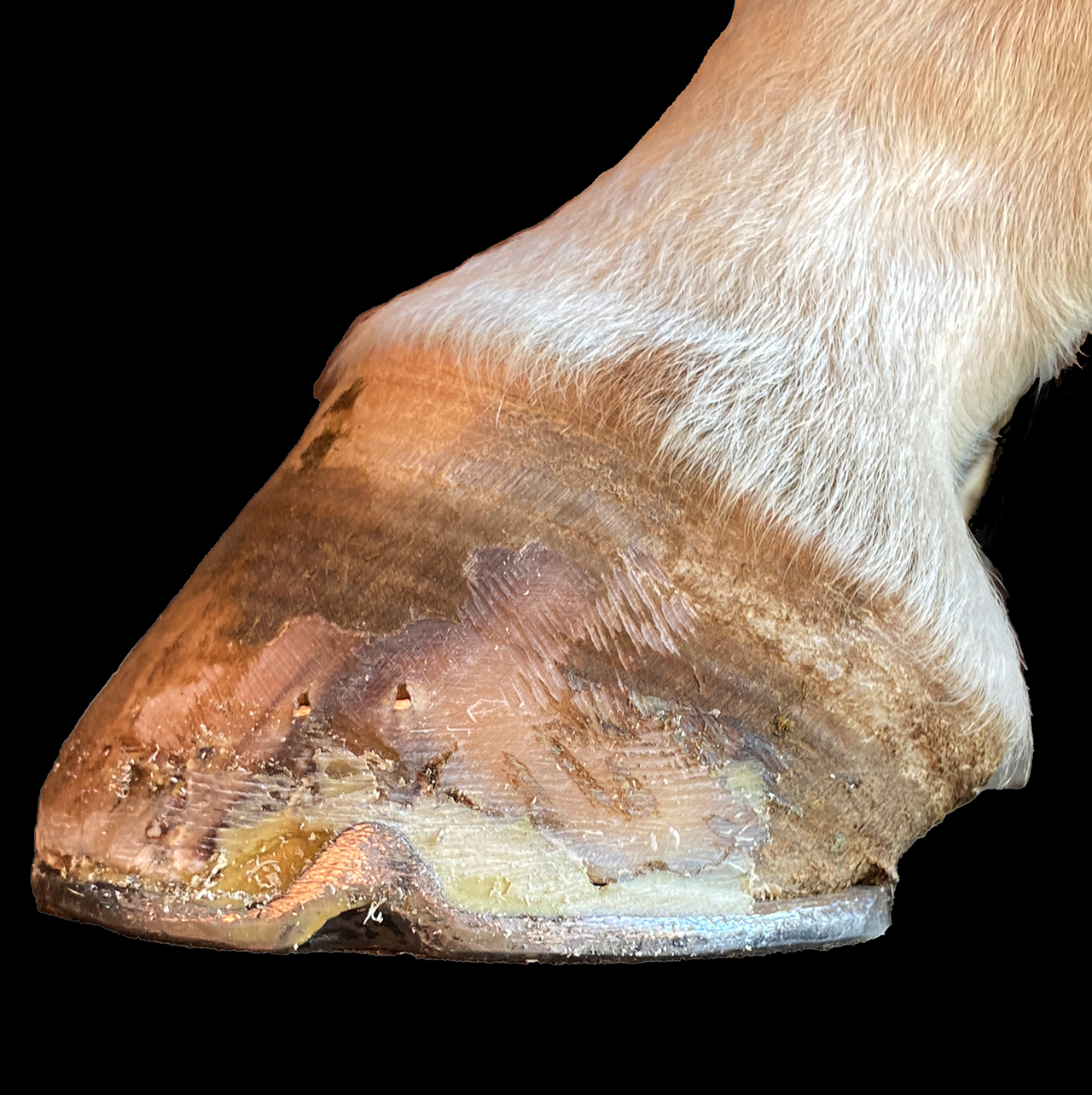What one focuses on will determine the direction of where the hoof is heading. If you read the signs correctly, the path to where you want to end up seems very easy. Try not to be distracted by the things that are causing the hoof to appear distorted when focusing on the future hoof you are planning to attain. Pictures here show some problems needing correction.